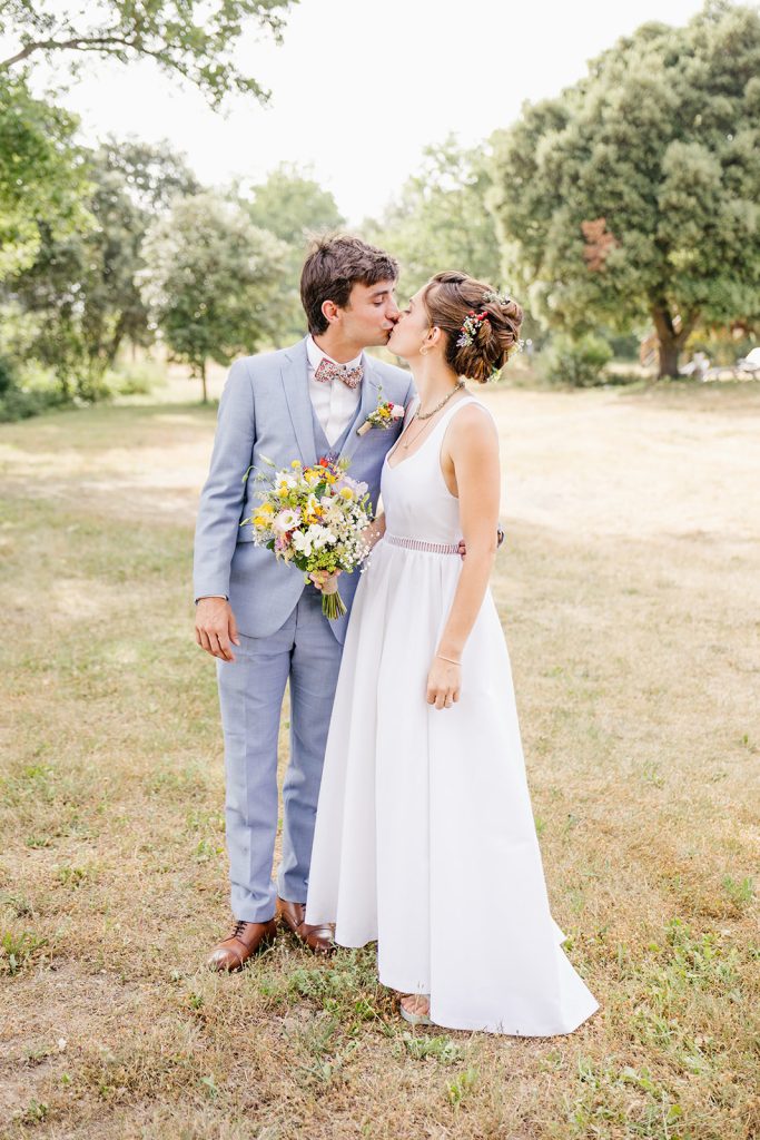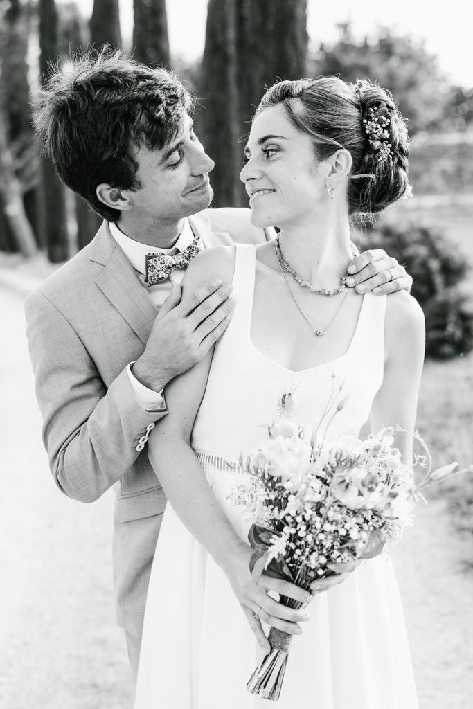 Après la cérémonie et les photos de groupe, les invités se sont retrouvés pour un cocktail sous les grands platane du domaine. Nous en avons d’ailleurs profité pour nous échapper une petite demi-heure afin de faire notre séance photo de couple juste avant le couché du soleil.