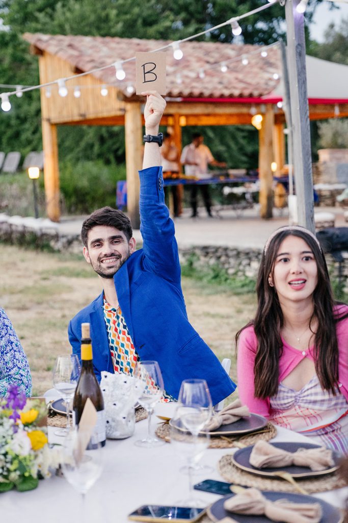 La soirée s’est poursuivie par un repas en extérieur, sous les guirlandes lumineuse et les rires des invités.